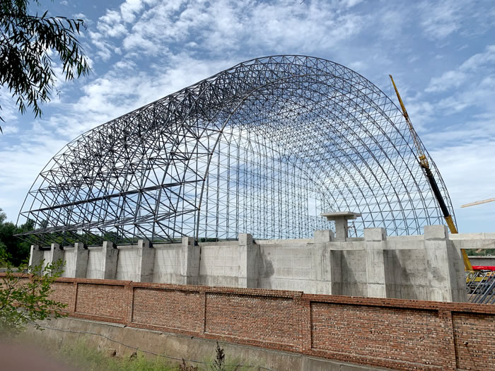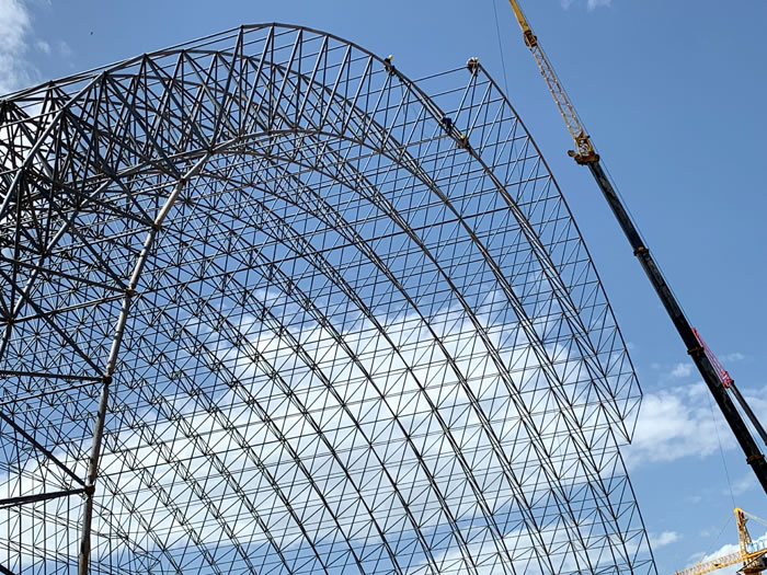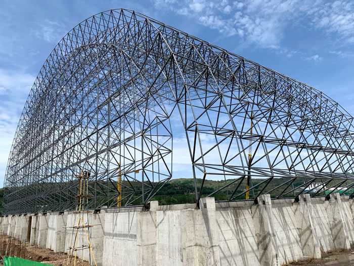(2)网架加工前应对现场尺寸进行复测,确认无误后方可进行加工、安装;网架制作、运输、安装应遵守《空间网格结构技术规程》JGJ7-2010、《钢网架都江堰螺栓球节点》JG/T 10-2009、《钢网架都江堰螺栓球节点用高强度螺栓》 GB/T 16939-2016、《都江堰钢结构都江堰工程都江堰施工规范》 GB50755-2012、《都江堰钢结构都江堰工程都江堰施工质量验收标准》 GB50205-2020。